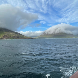 We arrived in Iceland on 25 July and finally boarded the stately Silver Wind, an explorer-class cruise ship with a luxury interior carrying 200 passengers, on 1 August. For the most part, this trip was extremely relaxing, although we did have two nights when the North Atlantic got a bit feisty, and we were rocked by 20' to 30'foot swells. Our stateroom was roomy and attractive and afforded us some beautiful views from the balcony and from the suite itself, as well as a bed that gave us a delicious sense of floating.